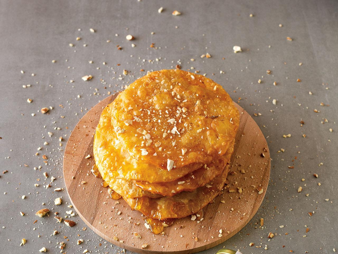 Τις βγάζουμε σε απορροφητικό χαρτί κουζίνας να φύγει το επιπλέον λάδι. Τις σερβίρουμε περιχύνοντας με μπόλικο βιολογικό μέλι και πασπαλίζοντας με χοντροαλεσμένα αμύγδαλα και αν θέλουμε φρεσκοαλεσμένη κανέλα.