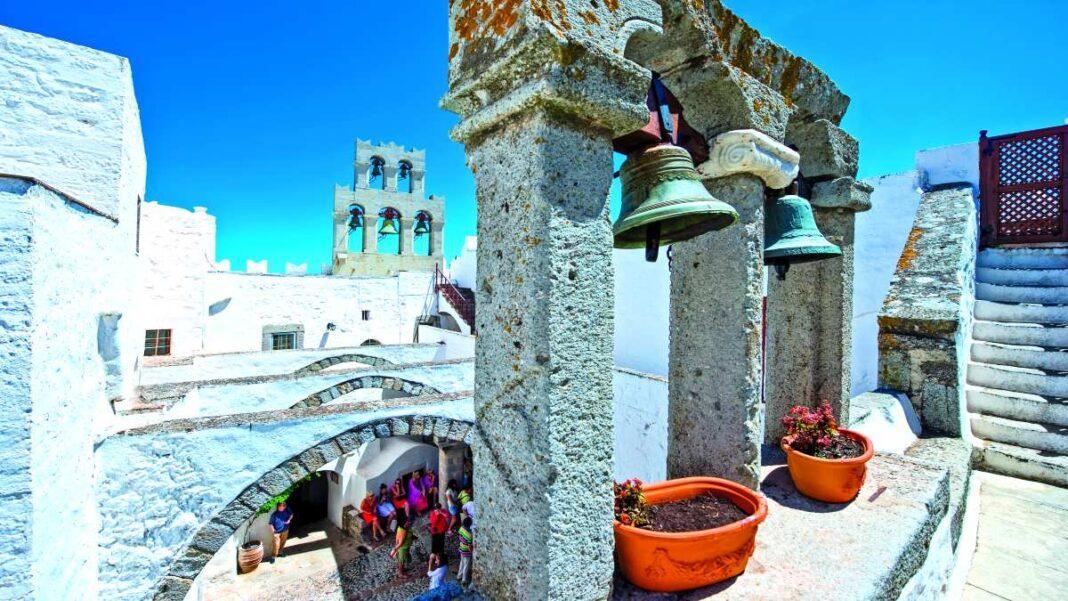 Το µέρος όπου ο Ευαγγελιστής Ιωάννης έγραψε το βιβλίο της Αποκάλυψης, έχει την τιµητική του τις ηµέρες του Πάσχα, µε ολοένα και περισσότερους επισκέπτες. Η αρχιτεκτονική της Χώρας είναι µοναδική, µε τα λευκά αρχοντικά και τα νησιώτικα σπίτια συγκεντρωµένα µε έναν γραφικό τρόπο κάτω από το µοναστήρι, µε στενά σοκάκια, λιθόστρωτες αυλές, παραδοσιακές ταβέρνες και µοντέρνα καταστήµατα.