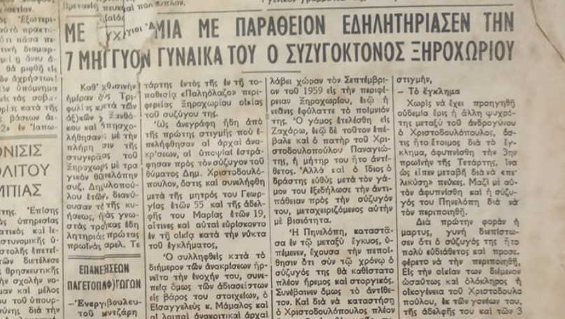 Ήταν 3 Ιουλίου του 1960, όταν άρχισε να ξετυλίγεται το κουβάρι μιας φρικτής δολοφονίας στο Ξηροχώρι Ζαχάρως, στην Ηλεία.