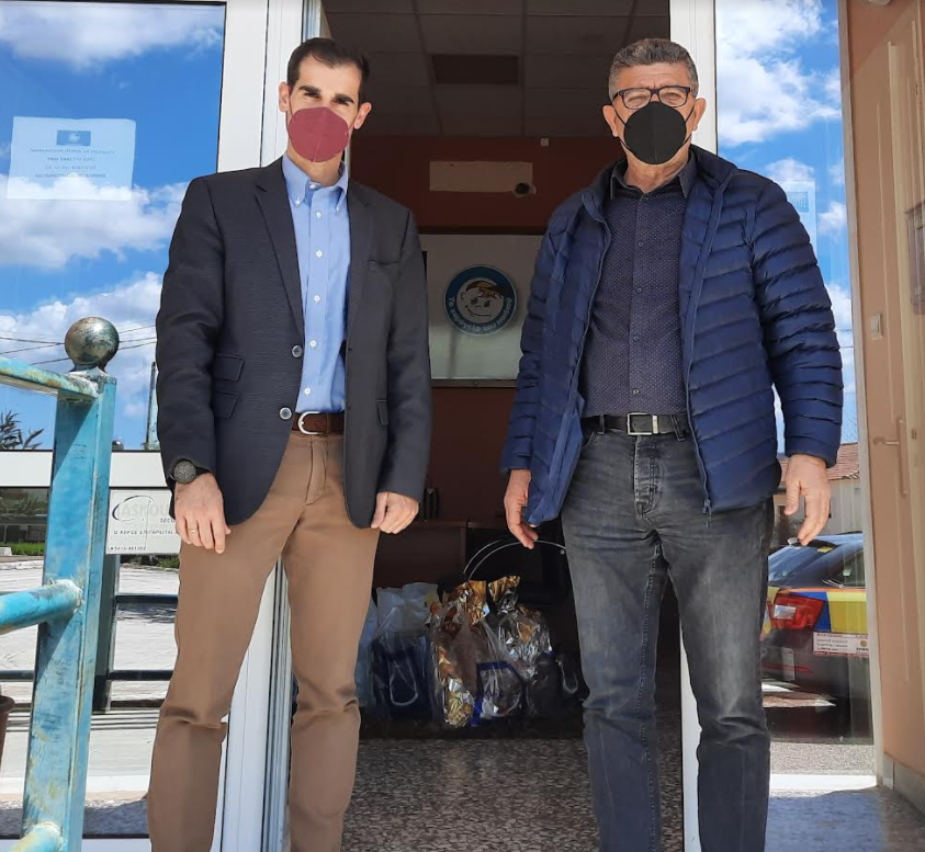 Αντιπεριφερειάρχης Π.Ε Ηλείας Βασίλης Γιαννόπουλος, προσφέροντας παιδικά βιβλία και γλυκίσματα για τα παιδιά που στηρίζει το Χαμόγελο.