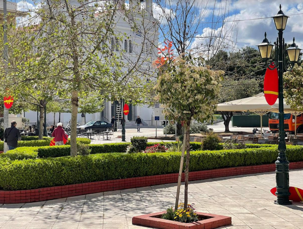 Τα «πασχαλινά» της φόρεσε η κεντρική πλατεία του Πύργου. Μεγάλα ξύλινα κόκκινα αυγά, διακοσμημένα με ζωγραφισμένες κίτρινες κορδέλες, τοποθετήθηκαν σε κολώνες και φανοστάτες, δίνοντας το χρώμα των ημερών στο κέντρο της πόλης. Ένα θέαμα που ευχαριστεί μικρούς και μεγάλους στην καθημερινή τους βόλτα.