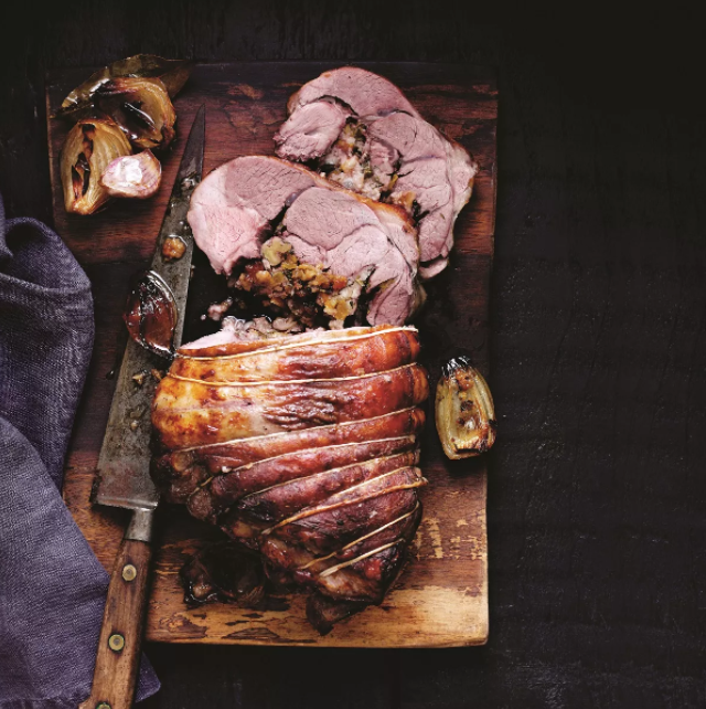 Αρνίσιο µπούτι γεµιστό µε βερίκοκα & φρέσκα µυρωδικά