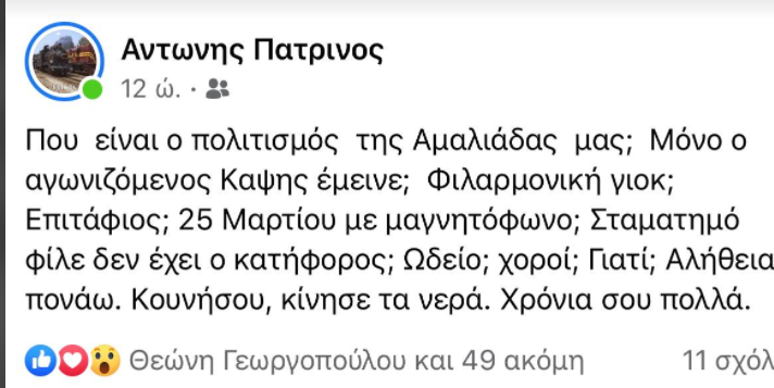 Βαρύ πένθος βιώνει ο πρώην δήμαρχος Πύργου και πρώην βουλευτής Ηλείας, Παναγιώτης (Τάκης) Αντωνακόπουλος, καθώς έφυγε από τη ζωή