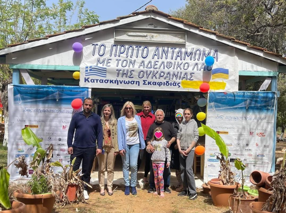 Συγκεκριμένα επισκέφτηκαν το «Χαμόγελο του παιδιού» στη Βροχίτσα όπου φιλοξενούνται πέντε μητέρες και έξι ανήλικα παιδιά, και την κατασκήνωση της Ι.Μ. Ηλείας στη Σκαφιδιά όπου φιλοξενούνται οικογένειες και μικρά παιδιά από τον πρόεδρο της Ελληνουκρανικής φιλίας Μιχάλη Ροδόπουλο.