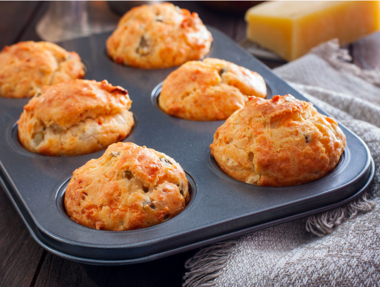 Χτυπάτε με το σύρμα το αβγό σε ένα μεγάλο μπολ μέχρι να ανοίξει και χτυπάτε μέσα το γάλα και το λιωμένο βούτυρο μέχρι να σμίξουν. Ανακατεύετε μέσα το ζαμπόν, το τριμμένο τυρί και το αλεύρι, μέχρι μόλις να ομογενοποιηθεί το μίγμα. Το αλατοπιπερώνετε (με λίγο αλάτι και μπόλικο πιπέρι). Μοιράζετε το μίγμα στα 12 φορμάκια.
