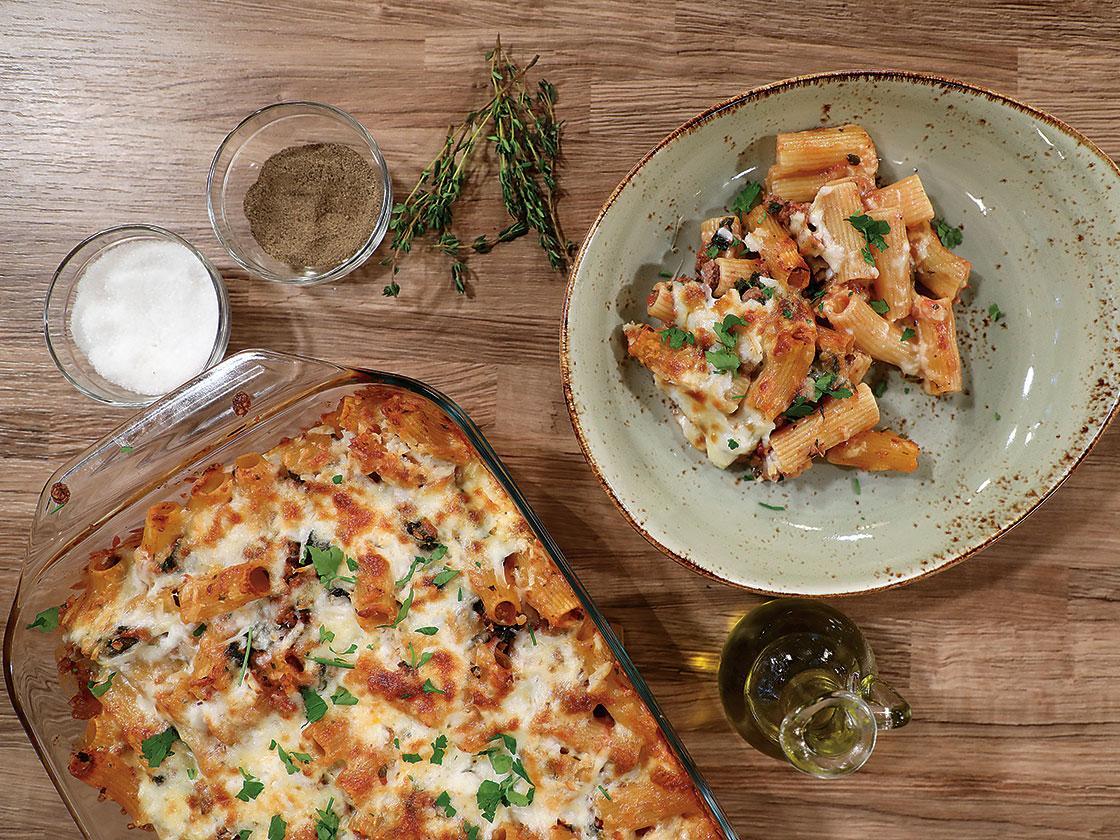 Βράζετε τα μακαρόνια σε άφθονο αλατισμένο νερό 2 λεπτά λιγότερο από τις οδηγίες στο πακέτο. Τα στραγγίζετε αλλά φυλάγετε 1 φλιτζάνι από το νερό τους. Αναμειγνύετε καλά τα μακαρόνια με τον κιμά. Προσθέτετε λίγο νερό των μακαρονιών (εγώ πρόσθεσα ½ φλιτζάνι).