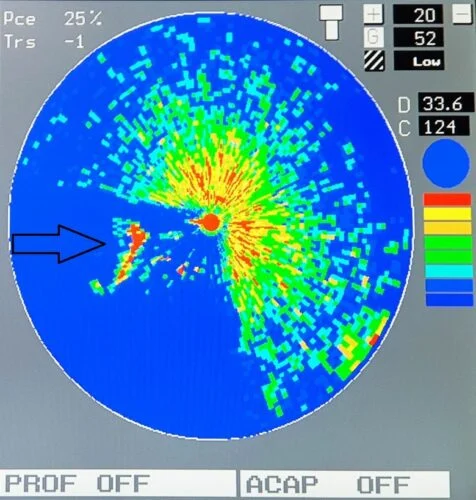 Όπως διαπιστώθηκε κατά την ταυτοποίησή του, το τιμόνι – πηδάλιο του μότορσιπ είναι στριμμένο στην θέση όλο αριστερά, ενώ τα τρία στρατιωτικά φορτηγά βρέθηκαν εκτός ναυαγίου, διασκορπισμένα στο βυθό κοντά στο ναυάγιο.