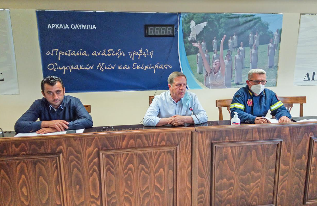 Ηλείας, του Προϊσταμένου του Π.Κ. Ολυμπίας κ. Ηλία Δουζένη, του μετεωρολόγου – ειδικού Διαχείρισης Φυσικών Καταστροφών κ. Θοδωρή Κονδύλη, του Υποδιοικητή του Αστυνομικού Τμήματος Αρχαίας Ολυμπίας κ. Γιάννη Πετρόπουλου, ενώ συμμετείχαν και αρκετοί Πρόεδροι Κοινοτήτων.