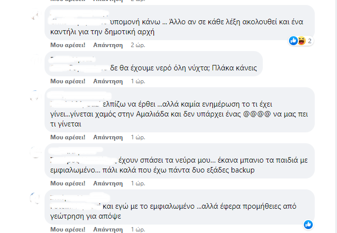 Πάλι χωρίς νερό έμεινε απόψε η Αμαλιάδας και νέες αντιδράσεις υπήρξαν από πολλούς δημότες, αφού αυτές οι διακοπές γίνονται συχνά.