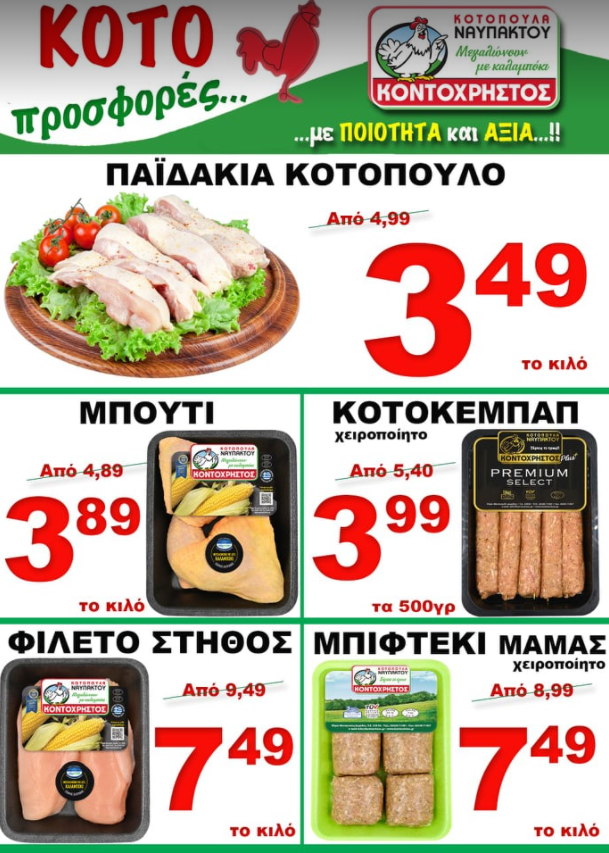 Νέα 3 ήμερη προσφορά από αύριο Πέμπτη 12 Μαίου μέχρι το Σάββατο 14 Μαίου στα αγαπημένα σας χειροποίητα προϊόντα, από τα καταστήματα “Κοτόπουλα Ναυπάκτου Κοντοχρήστος” στην Αμαλιάδα και στην Γαστούνη.