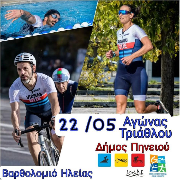 Ο Δήμος Πηνειού, πρωτοπόρος και στις αθλητικές διοργανώσεις, πέρασε στον χάρτη του Παρατριάθλου! Για πρώτη φορά στην Ηλεία, στην Πελοπόννησο και την Δυτ. Ελλάδα, διοργανώνεται στην παραλία Θινών Βαρθολομιού την Κυριακή 22 Μαΐου από την Εθνική Ομοσπονδία Ατόμων με Αναπηρίες το Πανελλήνιο Πρωτάθλημα Παρατριάθλου, μια σημαντική αθλητική διοργάνωση που στηρίζει το ΝΠ Πολιτισμού και Αθλητισμού του Δήμου.