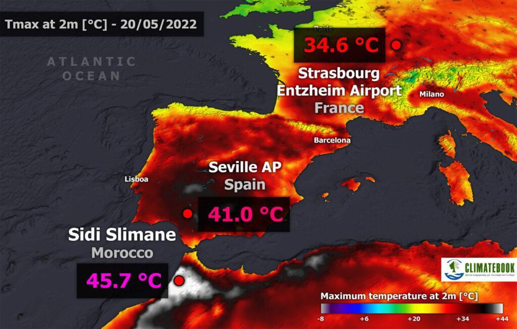 Όπως αναφέρει σε tweet ο Gaétan Heymes (επιστήμονας της Meteo France) για τη Γαλλία: Με μέση θερμοκρασία 20°C , το δεύτερο δεκαήμερο του Μαΐου παρουσίασε απόκλιση +5°C και κατέρριψε το ρεκόρ θερμότητας του 1998 κατά περισσότερο από 1°C. Στα μέσα Μαΐου 2022, οι θερμοκρασίες στη Γαλλία ήταν αντίστοιχες με εκείνες στα μέσα Ιουλίου στα τέλη του εικοστού αιώνα.