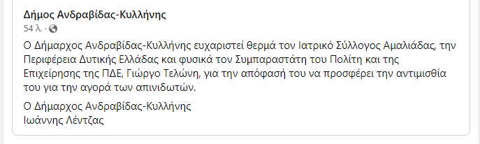 Το ευχαριστήριο του Δημάρχου Ανδραβίδας Κυλλήνης Γιάννη Λέντζα: