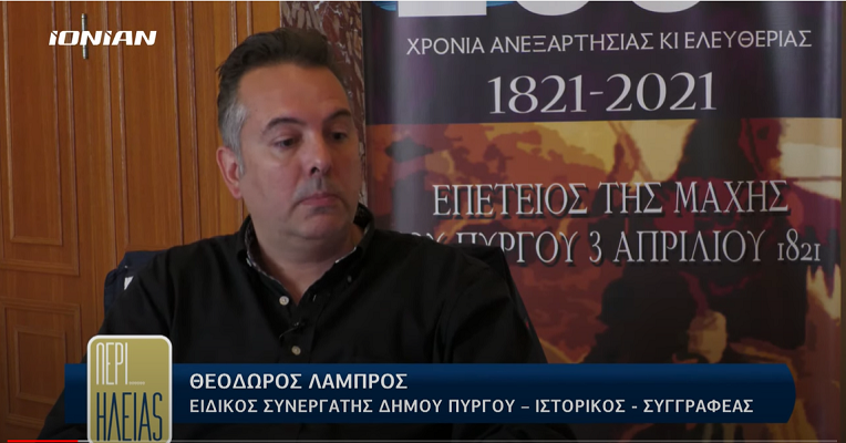 Ο Ειδικός Συνεργάτης του Δήμου Πύργου – Ιστορικός και Συγγραφέας Θεόδωρος Λάμπρος στην τηλεοπτική εκπομπή του