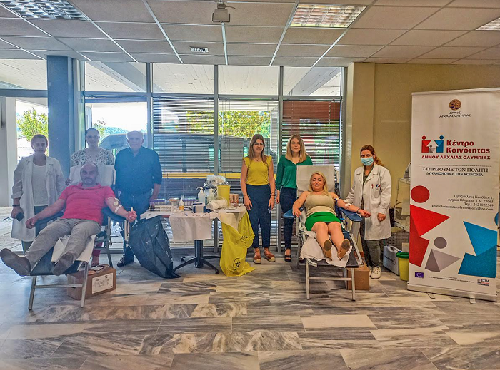 Με επιτυχία πραγματοποιήθηκε στο Δημαρχείο Αρχαίας Ολυμπίας μια ακόμη εθελοντική αιμοδοσία που οργάνωσε το Τμήμα Κοινωνικής Προστασίας και Αλληλεγγύης του Δήμου μαζί με το Κέντρο Κοινότητας, την Τρίτη 7 Ιουνίου 2022.