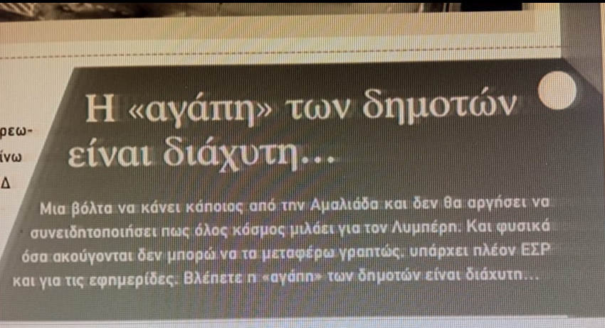 Το σχόλιο δημοσιεύεται σήμερα στη “ΠΡΩΤΗ” και αποτυπώνει την πραγματικότητα, μια πραγματικότητα που μόνο ο Λυμπέρης κάνει ότι δεν καταλαβαίνει…