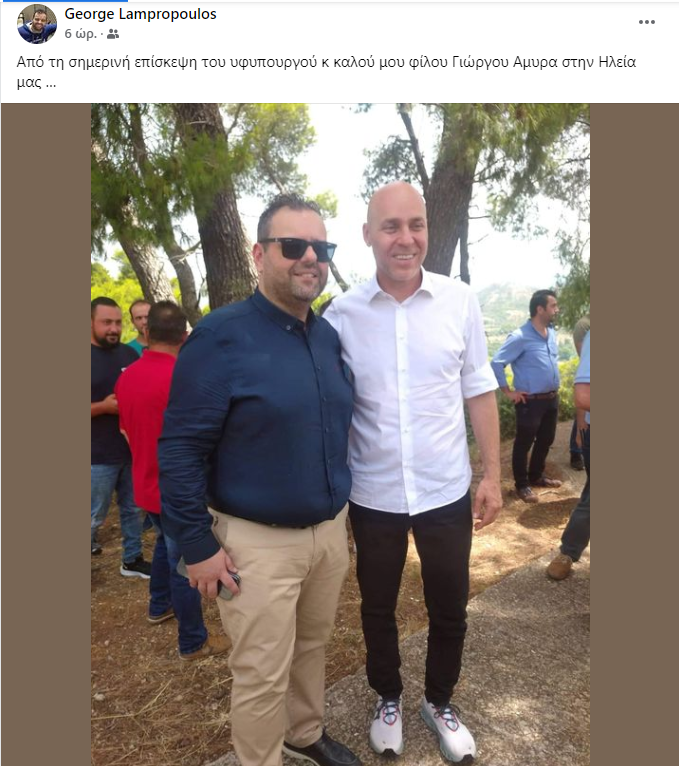 Πόσο, κατά δήλωσή του, είναι καλοί φίλοι ο διορισμένος Πρόεδρος της ΔΕΕΠ Ηλείας [πρώην ΝΟΔΕ] με τον υπουργό Γιώργο Αμυρά; Οσο εγώ είμαι με τον Κυριάκο Μητσοτάκη… του οποίου αν ζητήσω φωτογραφία δεν θα αρνηθεί… όπως κανένας πολιτικός.
