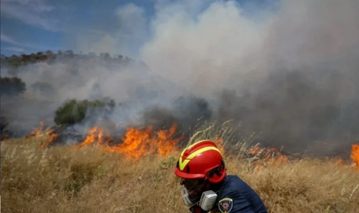 Σύμφωνα με τον ΣΚΑΪ, οι άνεμοι που επικρατούν στην περιοχή στρέφουν τις φλόγες στο πευκοδάσος που δεν είχε καεί από τα πρόσφατα πύρινα μέτωπα.