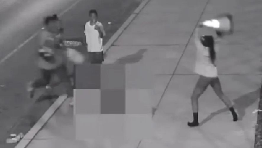 Στη συνέχεια, ένα από τα αγόρια τον χτυπά από πίσω με τον κώνο, ρίχνοντάς τον στο έδαφος. Ενώ ο 72χρονος βρίσκεται ακόμα πεσμένος κάτω, ένα κορίτσι σηκώνει τον ίδιο κώνο και τον πετά πάνω του, ενώ ένα άλλο μέλος της παρέας καταγράφει τη σκηνή με το κινητό.