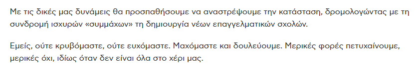 Αραγε, όταν μιλάει για δημιουργία “νέων επαγγελματικών σχολών” εννοεί κάτι ΙΕΚ;