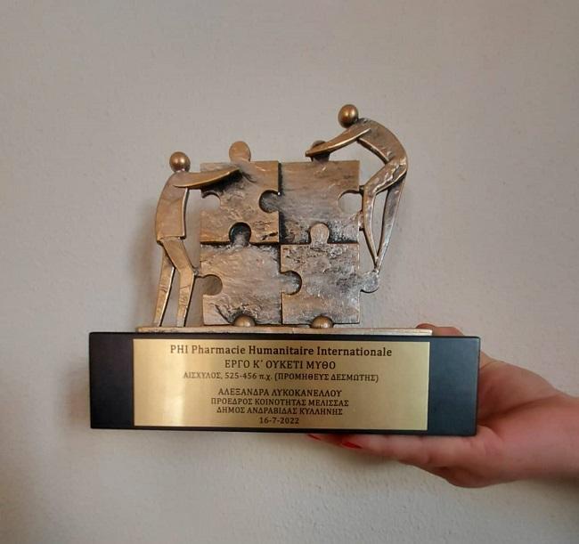 Επίσης το Τιμητικό Βραβείο της Κοινότητας Μέλισσας.