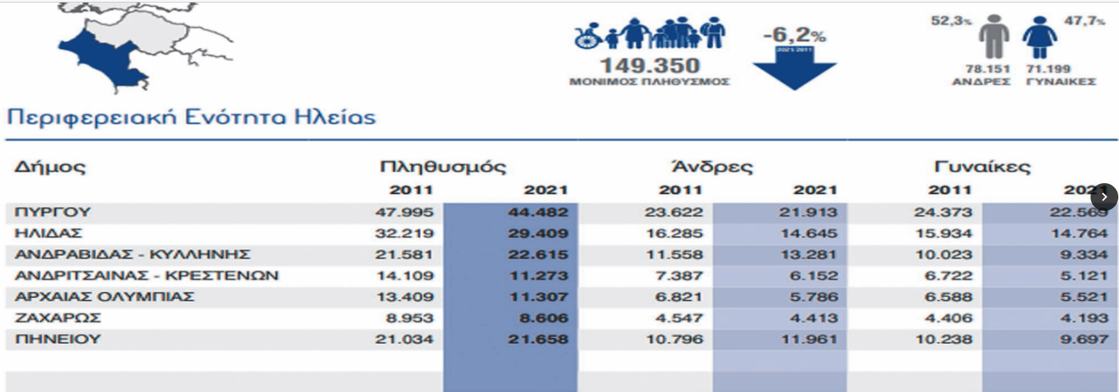 Οι μόνοι Δήμοι της Ηλείας που παρουσίασαν αύξηση πληθυσμού!