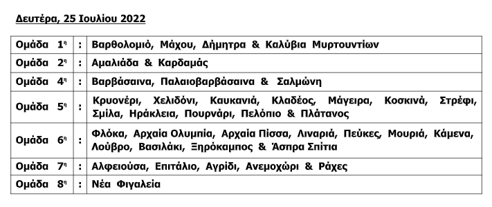 Η Δ/νση Αγροτικής Οικονομίας & Κτηνιατρικής της Περιφερειακής Ενότητας Ηλείας, στο πλαίσιο εφαρμογής του Προγράμματος Δακοκτονίας 2022, ενημερώνει τους ελαιοπαραγωγούς ότι ξεκινά δολωματικός ψεκασμός στις παρακάτω Τοπικές Κοινότητες: