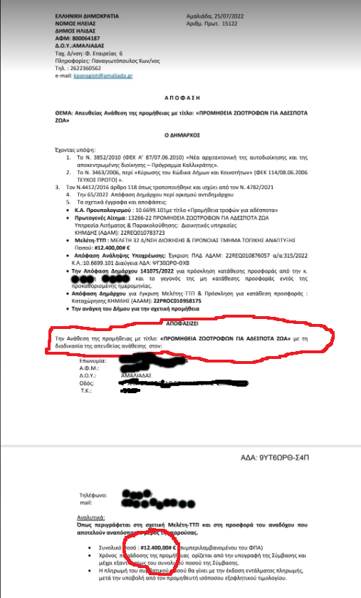 Παραθέτω το ένταλμα, δημοσιευμένο στο Διαύγεια, κρύβοντας το όνομα γιατί δεν είναι σκοπός μου να “στήσω κάποιον στο τοίχο”, αλλά να δείξω σε όλους του δήμου Ηλιδας τις πρακτικές που ακολουθούνται: