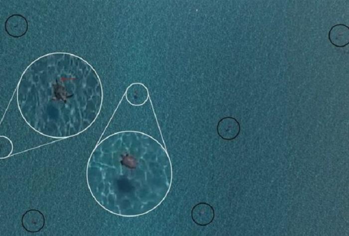 Κεντρική εικόνα: Καταγραφή χελωνών καρέτα καρέτα στον κόλπο του Λαγανά με drone. Το καλοκαίρι του 2020, η απουσία τουριστών έδωσε τη δυνατότητα στις χελώνες να βγουν και να παραμείνουν στα πιο ρηχά και θερμότερα νερά. Φωτογραφία: Κώστας Κατσελίδης