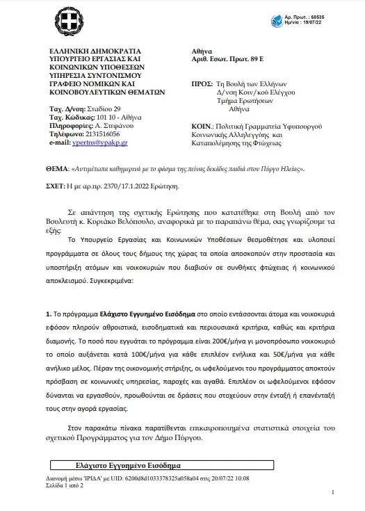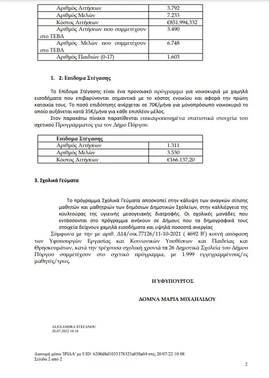 Τι αποκαλύπτουν τα στοιχεία που έδωσε στην δημοσιότητα η Δ. Μιχαηλίδου απαντώντας σε ερώτημα του Κ. Βελόπουλου