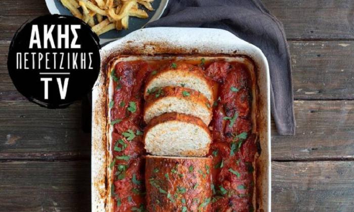 Μεταφέρουμε στο ταψί με το ρολό και ψήνουμε 1 ώρα και 15 λεπτά.