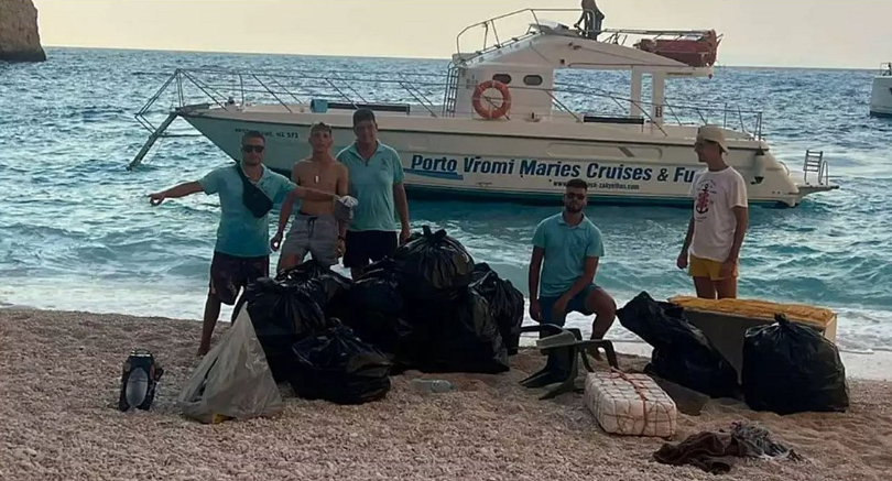 Με πρωτοβουλία ιδιωτών φαίνεται πως απομακρύνθηκαν τα σκουπίδια από τη διάσημη παραλία Ναυάγιο της Ζακύνθου.
