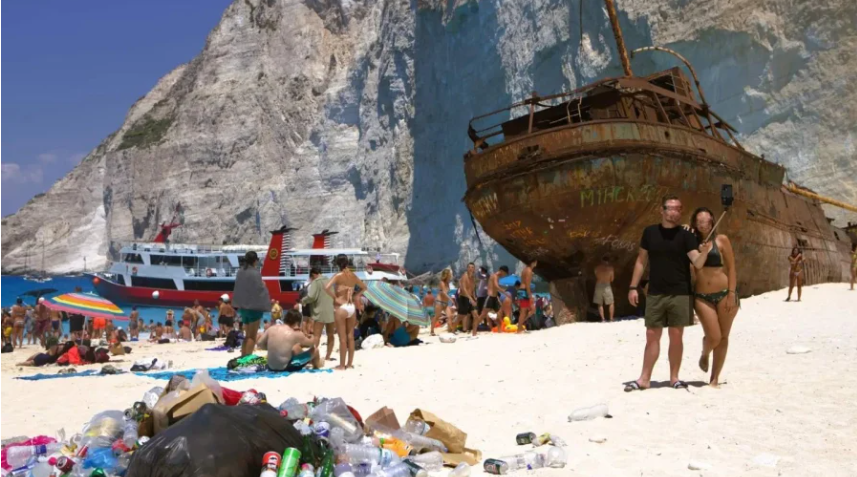 Η ανάρτηση συνοδεύεται από φωτογραφία από το Ναυάγιο της Ζακύνθου που δείχνει σωρό από σκουπίδια να έχουν συσσωρευτεί στην διάσημη παραλία.