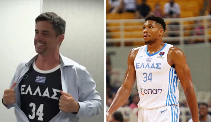 Έτσι, λοιπόν, αποφασίζει να παρακούσει την εντολή και βγάζει το πουκάμισό του, όπου μέσα φοράει τη φανέλα του Greek Freak λέγοντας πως: «Δεν μπορώ να το κάνω αυτό!».