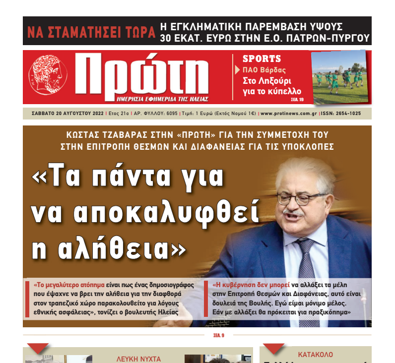 Κώστας Τζαβάρας στην «ΠΡΩΤΗ» για την συμμετοχή του στην Επιτροπή Θεσμών και Διαφάνειας για τις υποκλοπές
