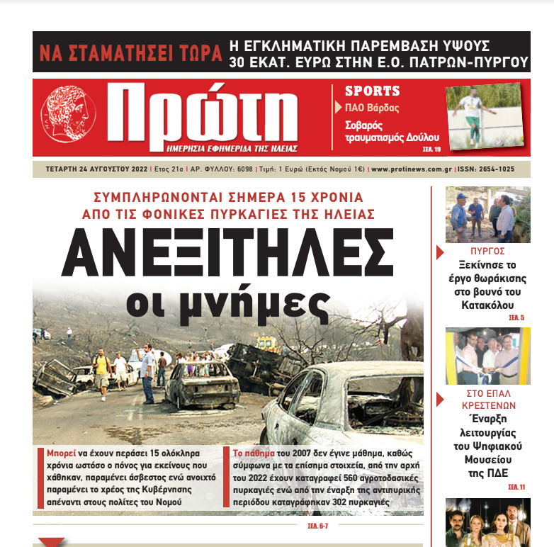 Κάθε φορά που ξεσπά μία φωτιά στην Ηλεία, ο νους ταξιδεύει αυτόματα στους ανθρώπους που χάθηκαν τον Αύγουστο του 2007…. Όλα
