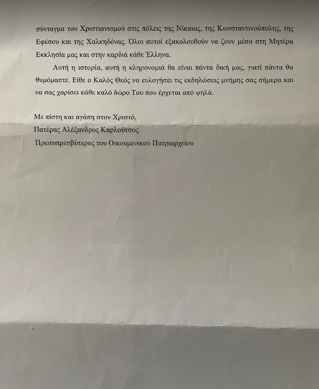 Η επιστολή του πατέρα Αλέξανδρου Καρλούτσου