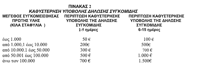 α) περιπτώσεις όπου δεν έχει υποβληθεί η δήλωση συγκομιδής από τον υπόχρεο, εκτός περιπτώσεων ανωτέρας βίας.