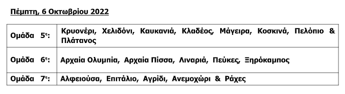 Η Δ/νση Αγροτικής Οικονομίας & Κτηνιατρικής της Περιφερειακής Ενότητας Ηλείας, στα πλαίσια εφαρμογής του Προγράμματος Δακοκτονίας 2022, ενημερώνει τους ελαιοπαραγωγούς για την έναρξη του τελευταίου δολωματικού ψεκασμού, στις παρακάτω Τοπικές Κοινότητες: