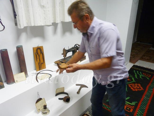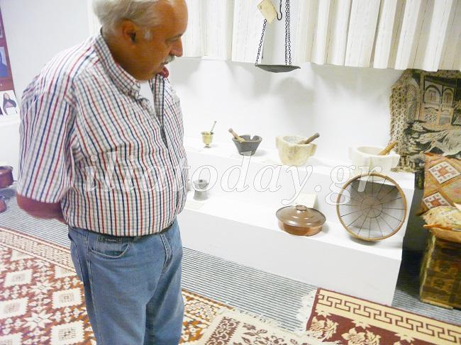 Είναι πράγματα που έφεραν από τα βάθη της Μικράς Ασίας, όπως το μπαούλο, οι μαξιλάρες κ.α. Υπάρχουν αντικείμενα που οι δικοί μας χρησιμοποιούσαν εδώ ερχόμενοι από την Μικρά Ασία. Υπάρχουν πράγματα εδώ μέσα που εμείς οι νεότεροι δεν είχαμε ξαναδεί, όπως η παλαμίδα που την χρησιμοποιούσαν για το κόψιμο των χόρτων με το δρεπάνι”.