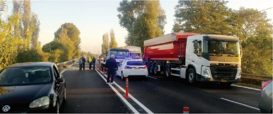 προβλημάτων, όπως το φαινόμενο της πολύ επικίνδυνης πλέον παράνομης προσπέρασης στην οποία πιθανότατα θα οδηγήσει ο περιορισμός της κυκλοφορίας στο ένα ρεύμα, με χρήση της κεντρικής, αποκλεισμένης με πλαστικές κορύνες λωρίδας.
