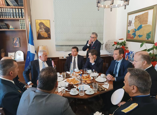 Σε ιδιαίτερα εγκάρδιο κλίμα κ. Αντωνακόπουλος υποδέχτηκε τον κ. Βορίδη και τους προσκεκλημένους του, μεταξύ των οποίων ο Αντιπεριφερειάρχης Π.Ε. Ηλείας Βασίλης Γιαννόπουλος, ο Αντιπεριφερειάρχης Αθλητισμού Εθελοντισμού και Ολυμπισμού Δημήτρης Νικολακόπουλος, ο πρόεδρος της ΔΕΕΠ Ηλείας Γιώργος Λαμπρόπουλος, εκπρόσωποι των Σωμάτων Ασφαλείας του νομού, συλλόγων κ.α.