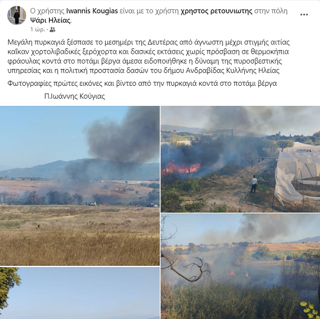 Δήμος Ανδραβίδας-Κυλλήνης: Φωτιά στο Ψάρι