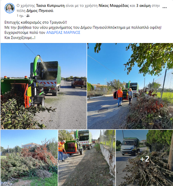 Το συγκεκριμένο μηχάνημα, μοναδικό σε όλη την Ηλεία, από τη πρώτη στιγμή μπήκε σε λειτουργία και πλέον τα κομμένα κλαδιά δεν αποτελούν πρόβλημα για τον δήμο, αφού μετατρέπονται σε τρίμμα κι έτσι όλες οι περιοχές παραμένουν καθαρές.