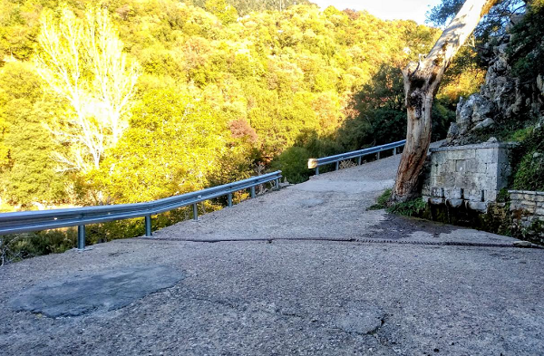 2. Στην επικίνδυνη στροφή (είχε πέσει εκεί αυτοκίνητο πριν 80 χρόνια!!) προς Γκρουστάδες (στη θέση “Αγκλενιά του Σωτηρόπουλου”)