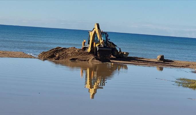 Στις εκβολές του Πηνειού έφθασε νωρίς το πρωί της Δευτέρας ο Δήμαρχος Πηνειού κ. Ανδρέας Μαρίνος ο οποίος έδωσε εντολή στον αντιδήμαρχο κ. Νίκο Μαφρέδα να παρέμβει μηχάνημα του Δήμου για να ανοίξει η Μπούκα.