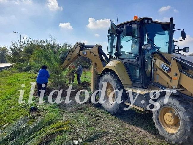 “Σήμερα φυτέψαμε φοίνικες, τους οποίους πήραμε δωρεάν από το εργοστάσιο με τις καραμέλες. Είναι περίπου 20-25 φοίνικες και ξεκινήσαμε να τους τοποθετούμε στην έξοδο της Γαστούνης προς Ρουπάκι, στα φανάρια δεξιά και θα συνεχίσουμε αύριο, αν δεν βρέξει, στην αριστερή μεριά και στην άλλη έξοδο που βγαίνουμε για Αμαλιάδα.