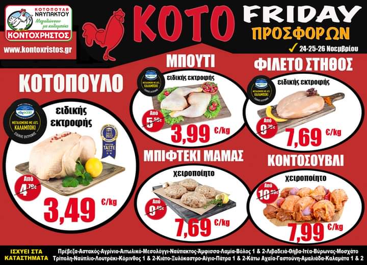 “Κοτόπουλα Ναυπάκτου Κοντοχρήστος”: Απόψε Σάββατο 26/11 τελευταία ημέρα προσφοράς…