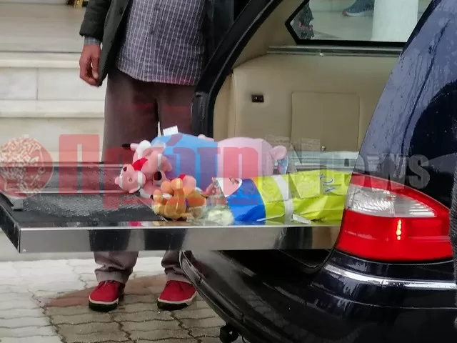 Η σορός του 5χρονου έφτασε στον Ι.Ν. Αγ. Γεωργίου λίγο μετά τις 4:00 σήμερα το απόγευμα, ενώ δίπλα στο λευκό φέρετρο του παιδιού υπήρχαν τα αγαπημένα του παιχνίδια.