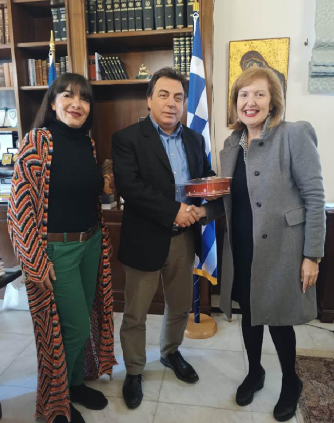Επίσκεψη αγάπης εν όψει της εορτής των Χριστουγέννων πραγματοποιήσαν στο Λάτσειο Δημοτικό Μέγαρο οι κ.κ. Πετρόγιαννη και Ηλιάδη, προκειμένου να δώσουν δώρα από τα παιδιά του σχολείου αλλά και να ευχαριστήσουν τον δήμαρχο Πύργου για την στήριξη και τη βοήθειά του στα παιδιά της σχολικής μονάδας και το έργο των εκπαιδευτικών. Εκτός από τον δήμαρχο, η διευθύντρια του σχολείου και η εκπαιδευτικός πρόσφεραν δώρα στον αντιδήμαρχο Παιδείας και Δια Βίου Μάθησης Γιάννη Πλεμμένο και στον διευθυντή του